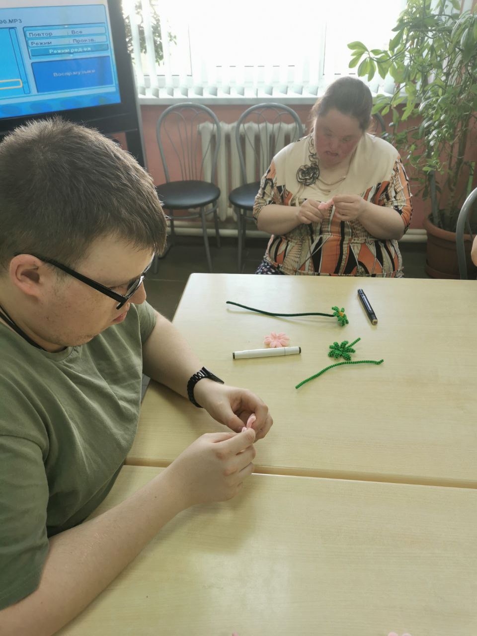 Получатели социальных услуг социально-реабилитационного отделения на занятии по трудотерапии работали с синельной проволокой В процессе манипуляции с проволкой, идёт естественный массаж биологически активных точек, расположенных на ладонях и пальцах рук, что способствует развитию тактильной...