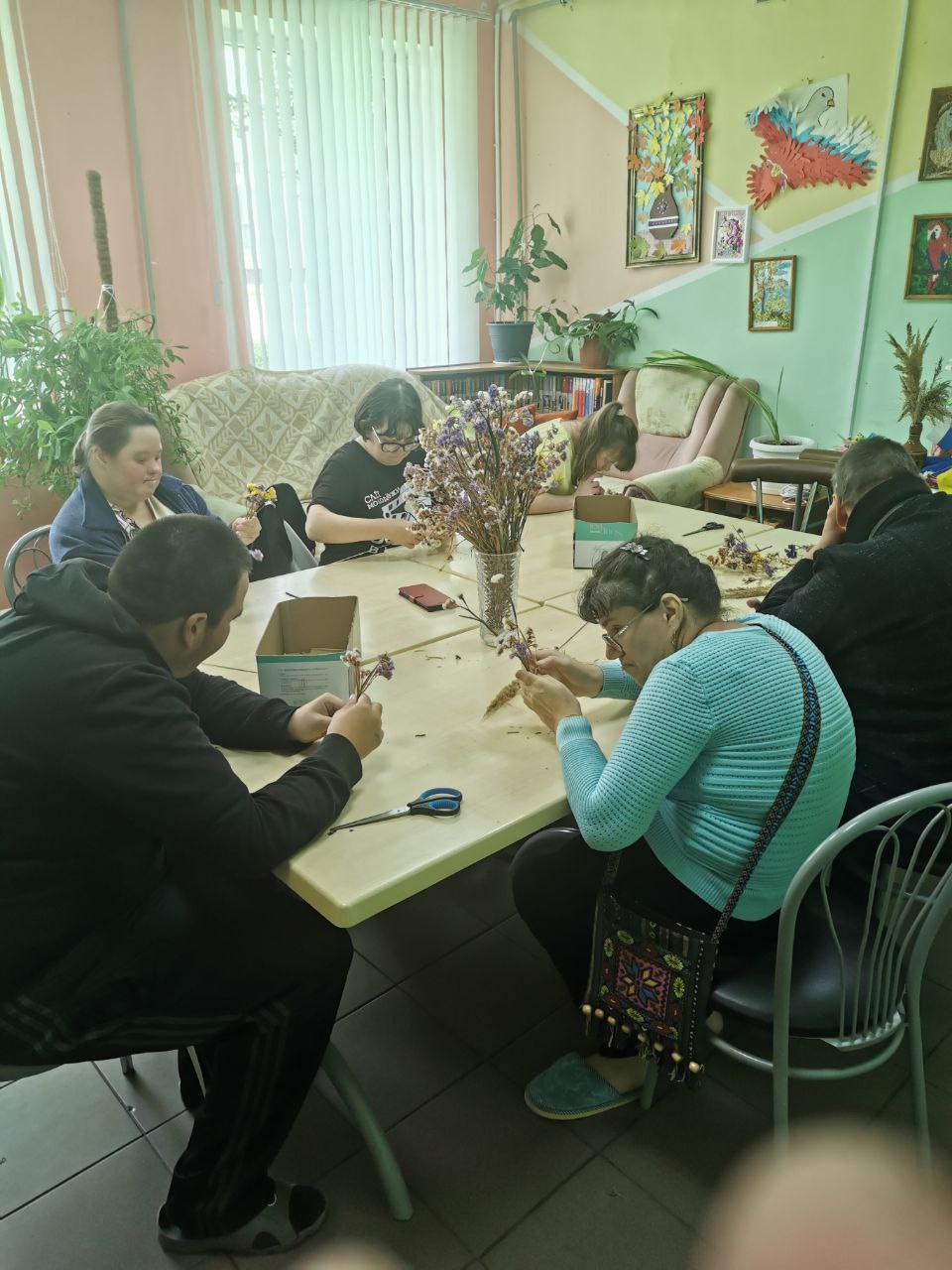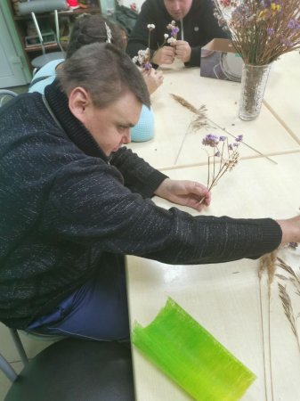 17.09.202 года в социально-реабилитационном отделении на занятиях по трудовой терапии получатели социальных услуг активно трудятся над формированием праздничных подарков ко Дню пожилого человека.