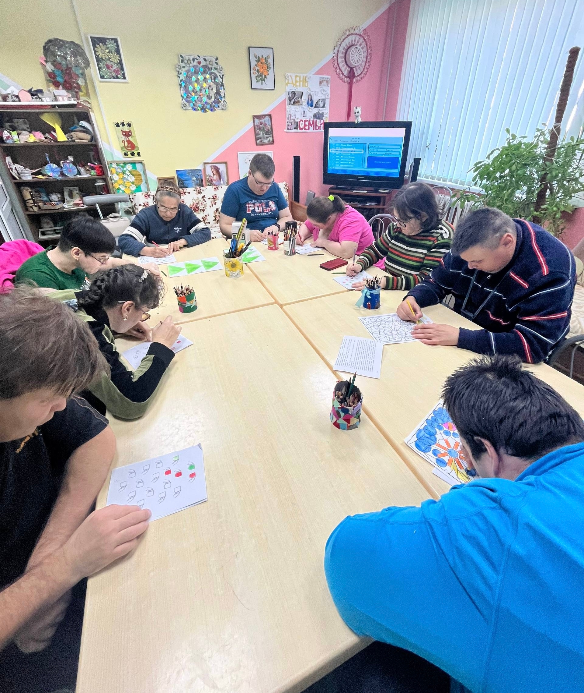 Получатели социальных услуг социально-реабилитационного отделения работают на развитие внимания и его свойств, а так же закрепляют полученные навыки пространственной ориентировки на плоскости.
