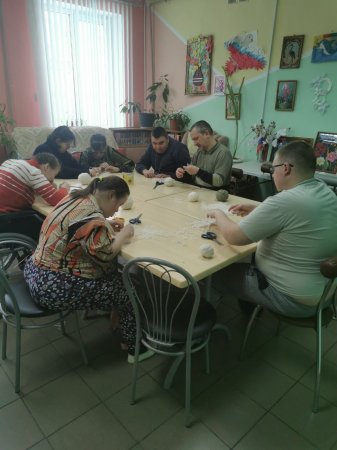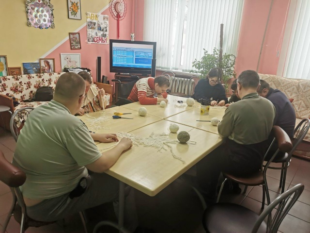 27.01.2026 года в социально-реабилитационном отделении на занятии по трудовой терапии получатели социальных услуг работали с нитками, используя технику "макраме"