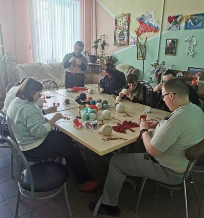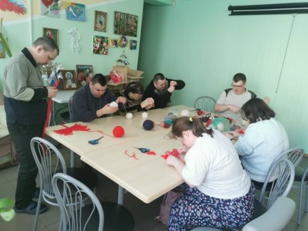 Получатели социальных услуг социально-реабилитационного отделения продолжают работать с нитками в технике макраме.